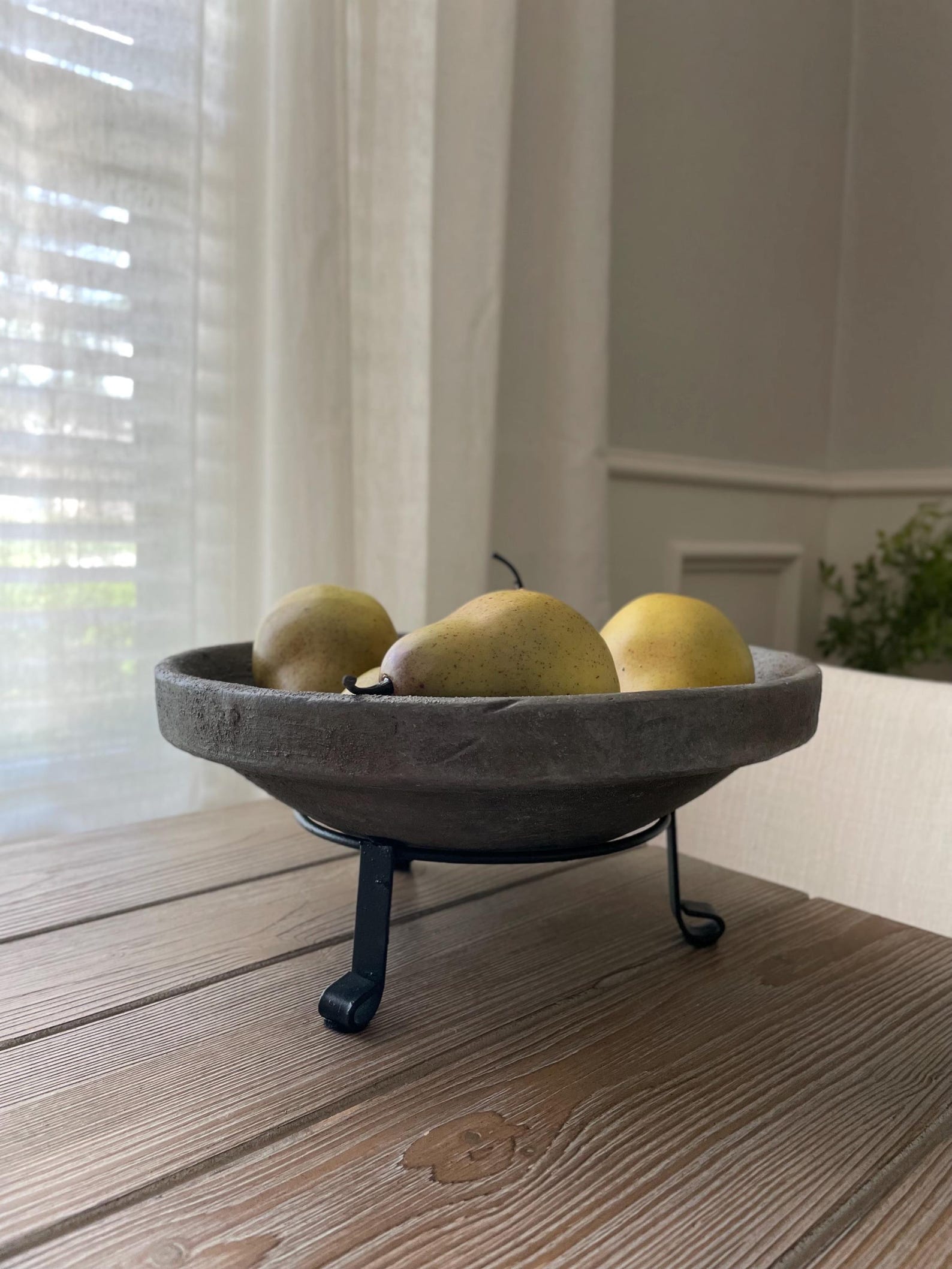 Hand finished dark earthy textured artisanal vase bowl with metal stand