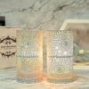 A clear bulb with fairy lights, and a metal stand in white color, create an aura of old-world charm.