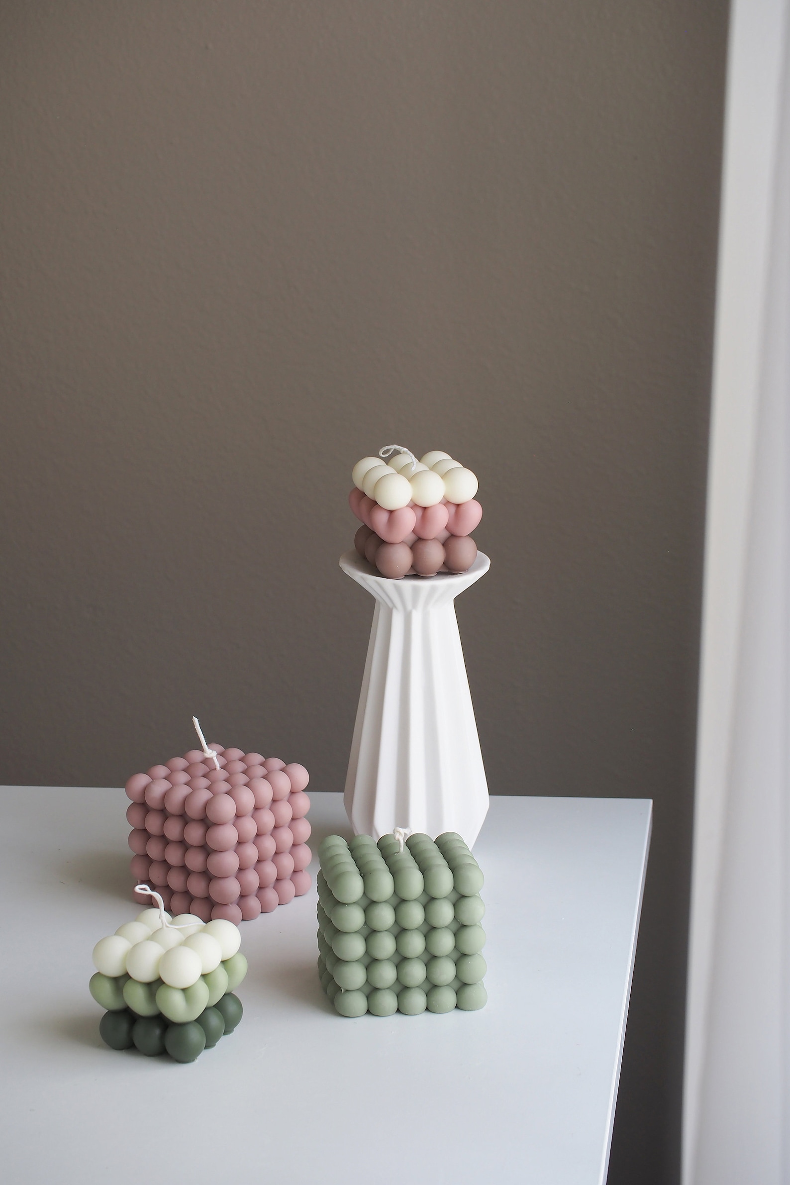 The BubbleX candle is an enlarged version of Bubble cube candle. It looks like neatly arranged pearls in a very cute shape. We use high-quality pure soy wax and blended it with white beeswax. When it is burning, the aroma released is healthy and environmentally friendly. Each one is hand-poured the moment you place your order. Due to the special shape, it cannot burn completely.