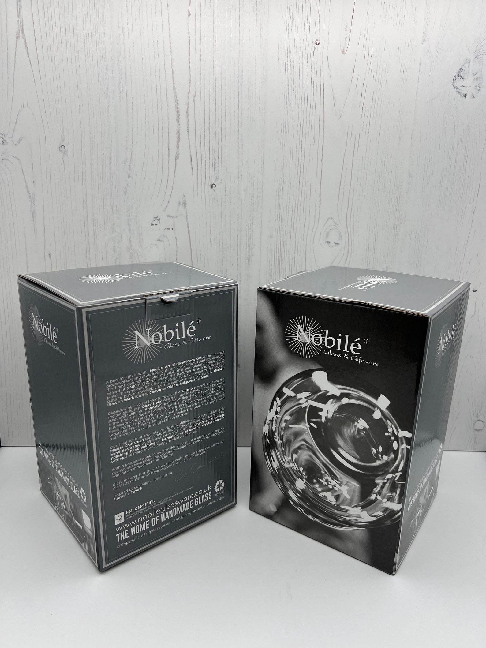 Each detail has been individually hand decorated onto our well established mouth blown heavy weight vases.