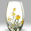 Handmade, hand decorated, and mouth blown Daffodil Collection Vase by Nobile Glassware.