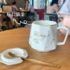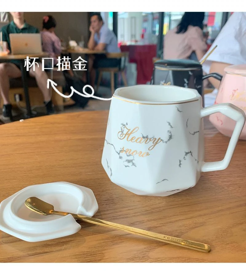 European Style Light Luxury Gold-painted Ceramic Coffee Mug with Lid SpoonMilk Oatmeal Tea Mug Water Cup Creative Marble Mug