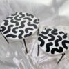 Small wooden decor table. Then it is air-dried and glazed with an acrylic finish to lock in color and seal. Sold individually or as a set. Perfect for small decor or as a plant stand to spice up your tablescape. Each piece is one of a kind. No piece is perfect and there may be small imperfections.