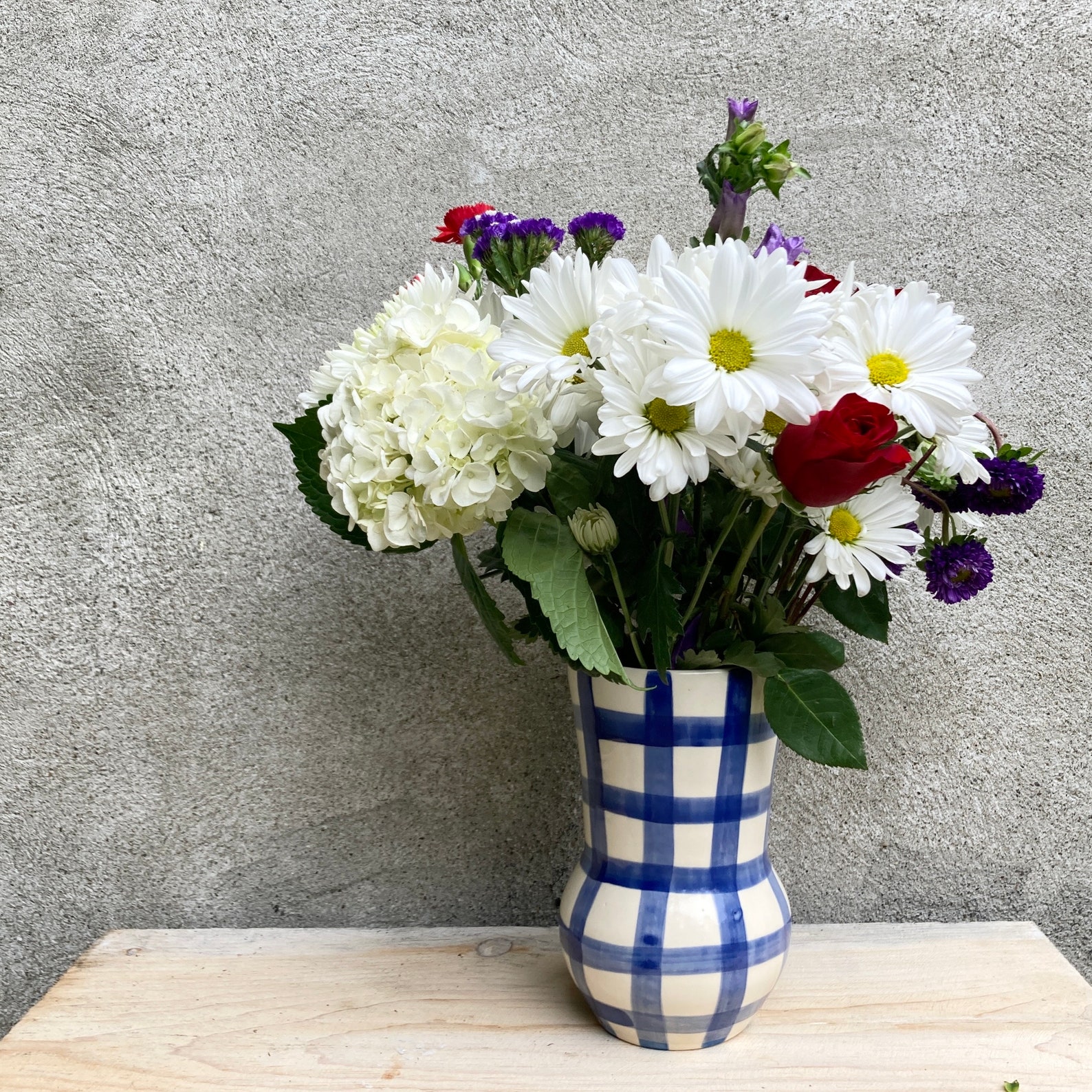 Handmade Ceramic Vase With Hand Painted Plaid Pattern