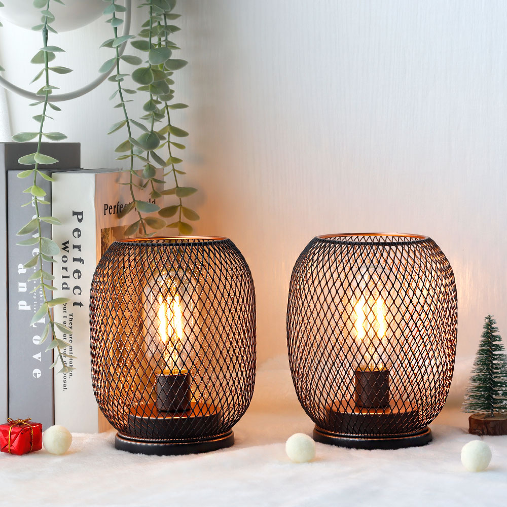 Metal Cage Table Lamp Round Shaped LED Lantern