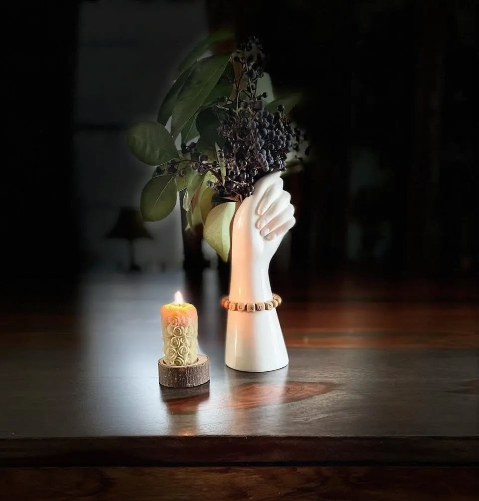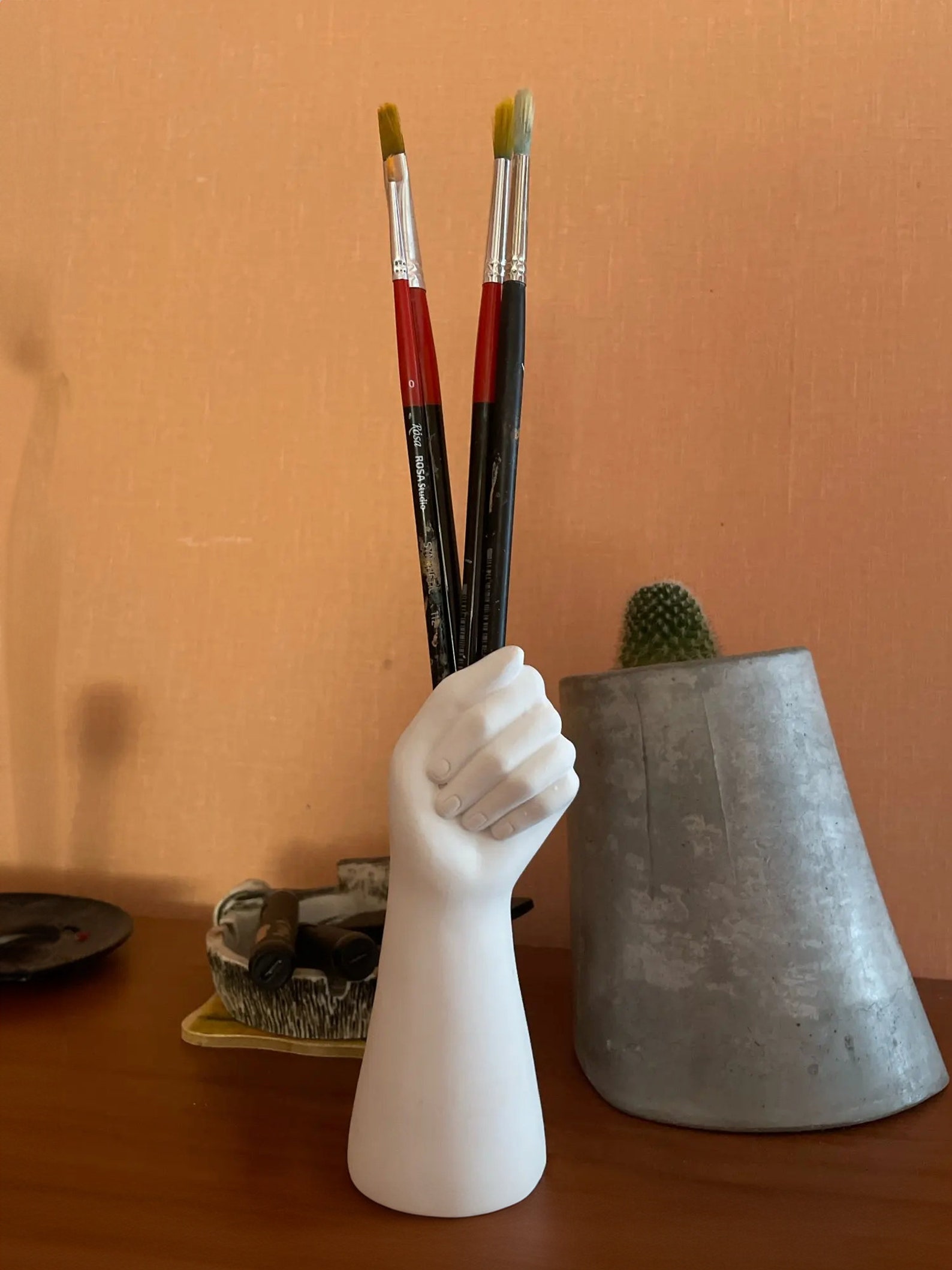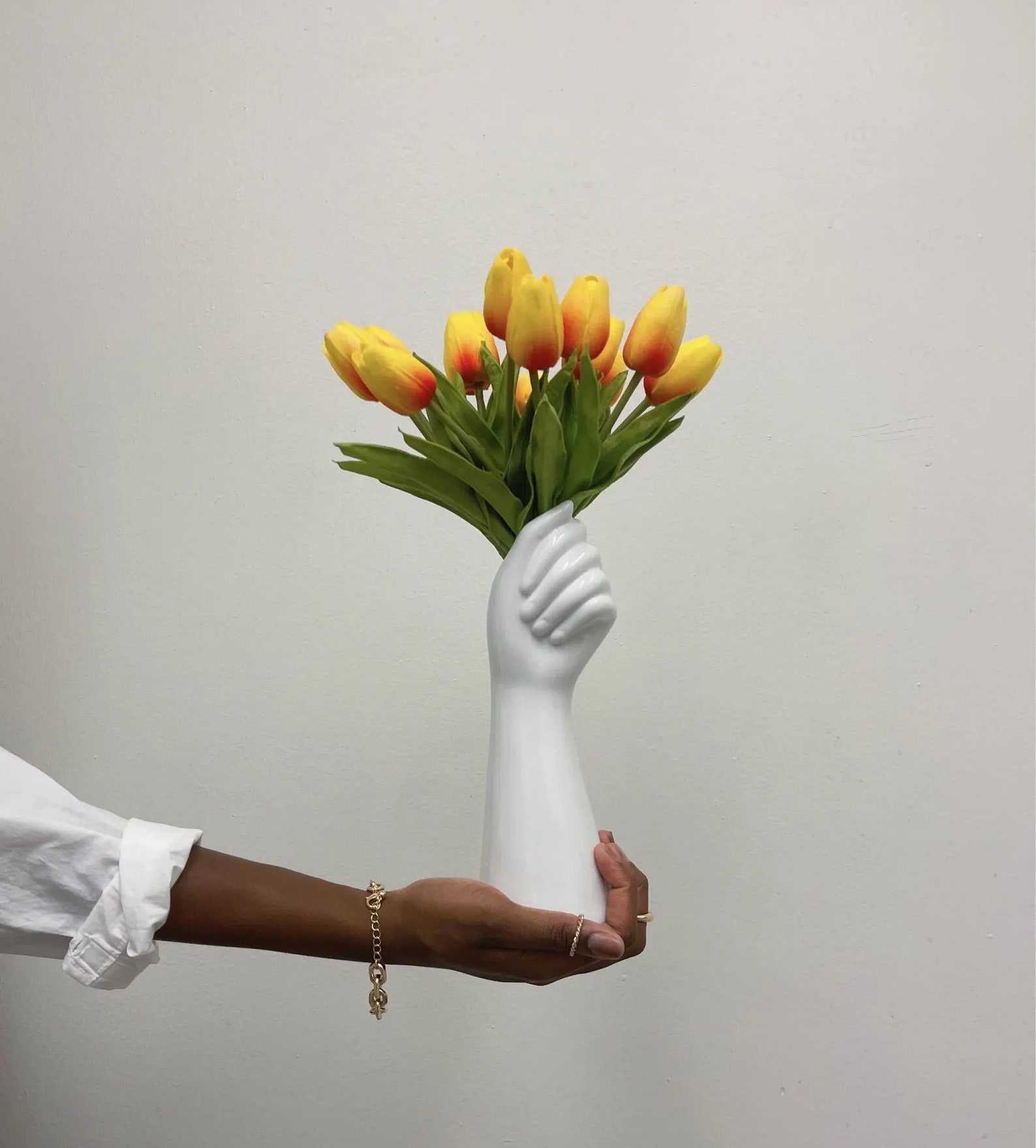 This modern ceramic vase, designed in the shape of a hand, blends unique artistry with practical functionality. It serves as an elegant flower pot, adding a stylish touch to any home decor. A perfect gift for her, this vase brings both artistic beauty and utility to any living space.