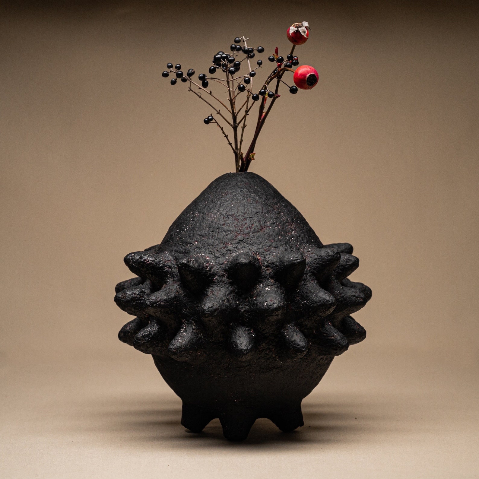 Paper Mache Wabi Sabi Black Vase: Modern Elegance Vase