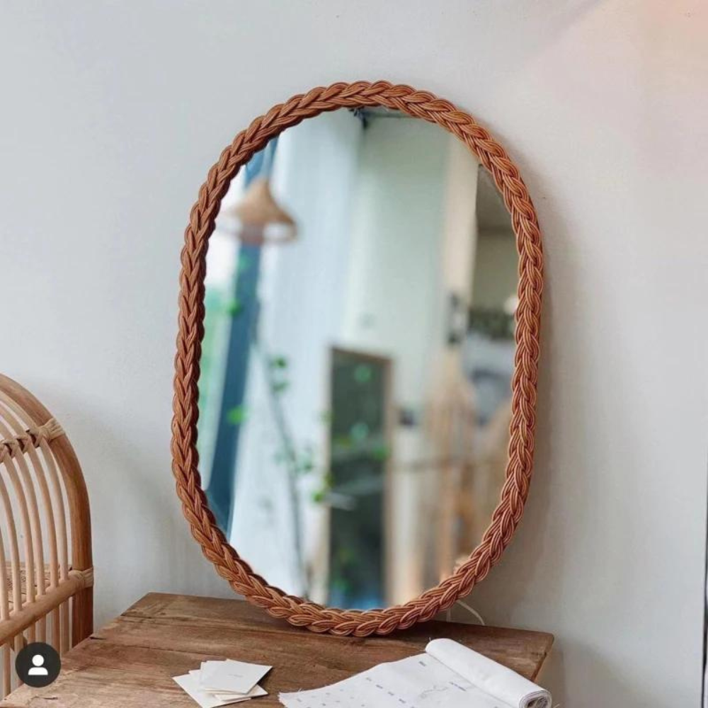Rattan Woven Mirror Oval Wall Art Decor Hanging Makeup Dressing Mirrors