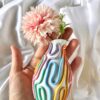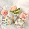 These bud vases make a cute home accent for any boho or modern home. Featuring 3d sculptural dots, modern colorful squiggles, tiny rainbows, tigers, and colorful flower swirls. Retro eclectic boho style.