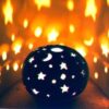 Light up one of these one of a kind handcrafted night lights and watch a tiny galaxy of stars and other shapes flicker from within.