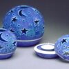 Stars Moon Lantern, Blue Purple Candileria Luminary, Ceramic Candle Holder