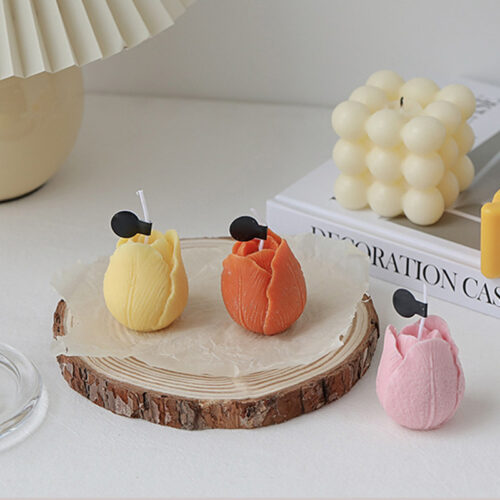 3PCS Handmade Tulip Candle Holder Shape Aroma Scented Home Decoration Candle